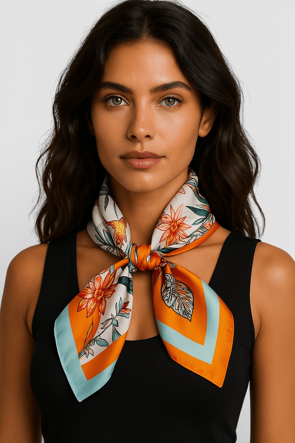 • Størrelse og alsidighed: 68 cm × 68 cm firkantet, alsidig omkring halsen eller som et lille statement.