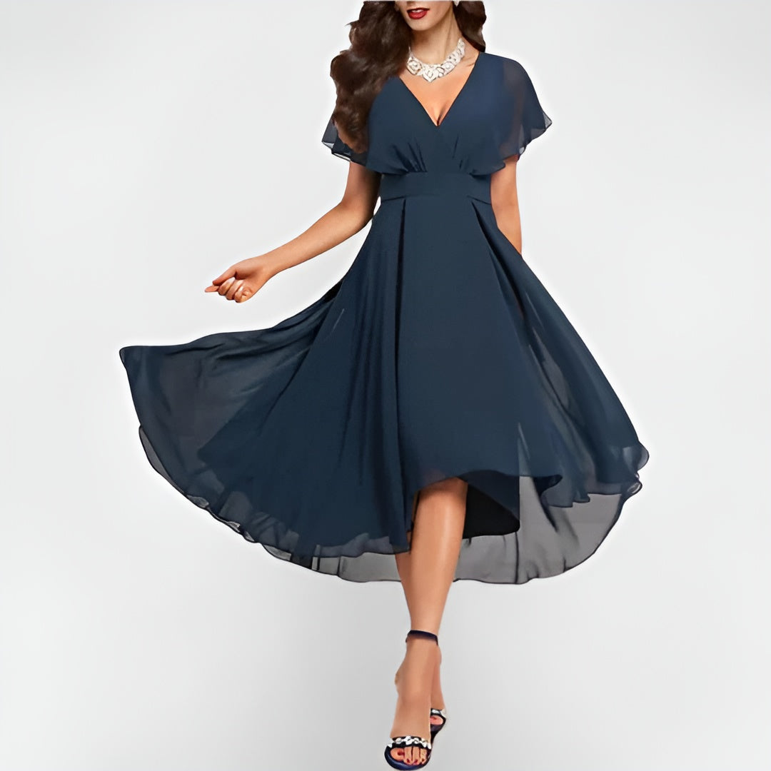 Catalina™ kjolen kombinerer tidløs stil med komfort. Den har en flatterende V-udskæring, lette ærmer og en blød, asymmetrisk kant, der bevæger sig smukt, når du går. Perfekt til både hverdag og fest.