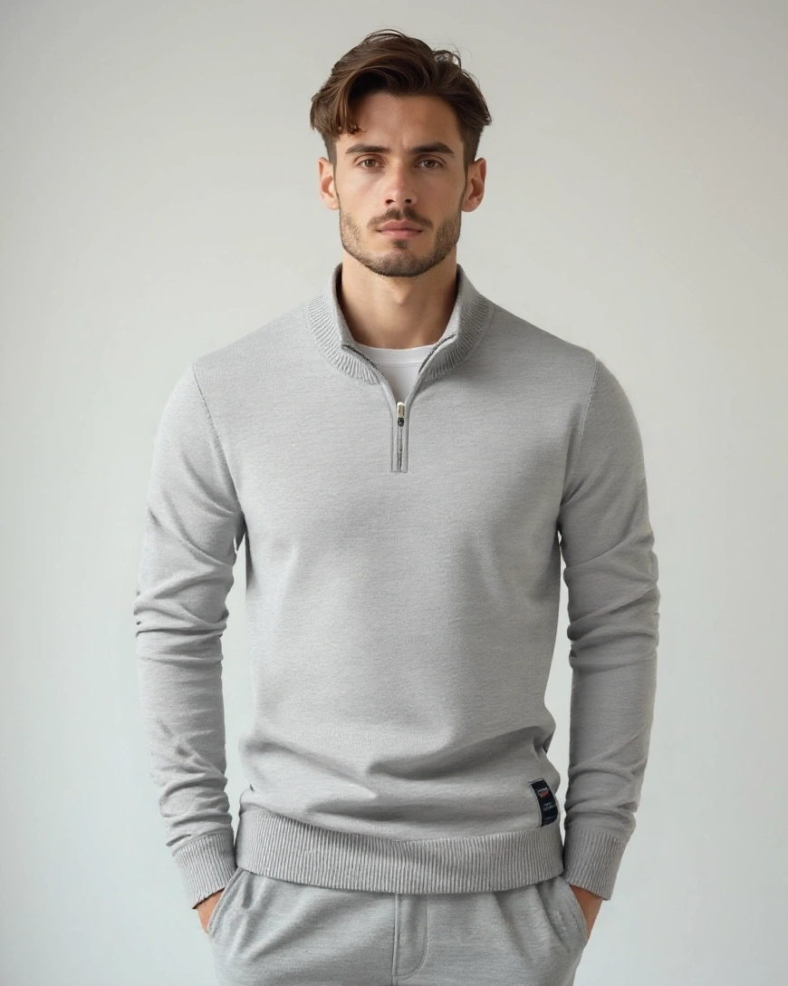 Jakob™ | Halvlukket Trøje udstråler tidløs elegance og præcision i hver detalje. Fremstillet af materialer af høj kvalitet — 95% bomuld og 5% elastan — tilbyder trøjen en utrolig blødhed, åndbarhed og let bevægelsesfrihed, der følger kroppens naturlige bevægelser. Den halvlukkede hals skaber en moderne silhuet uden at gå på kompromis med komforten, hvilket gør den lige naturlig til kontoret, som til afslappede dage. Trøjen signalerer solidt håndværk gennem samlinger og finish, og dens konstruktion er designet til at holde form gennem sæsoner. Tilgængelig i et begrænset antal, hvilket giver den eksklusivitet og en langtidsholdbar værdi som en ægte samlergenstand i en kvalitetsdrevet garderobe.