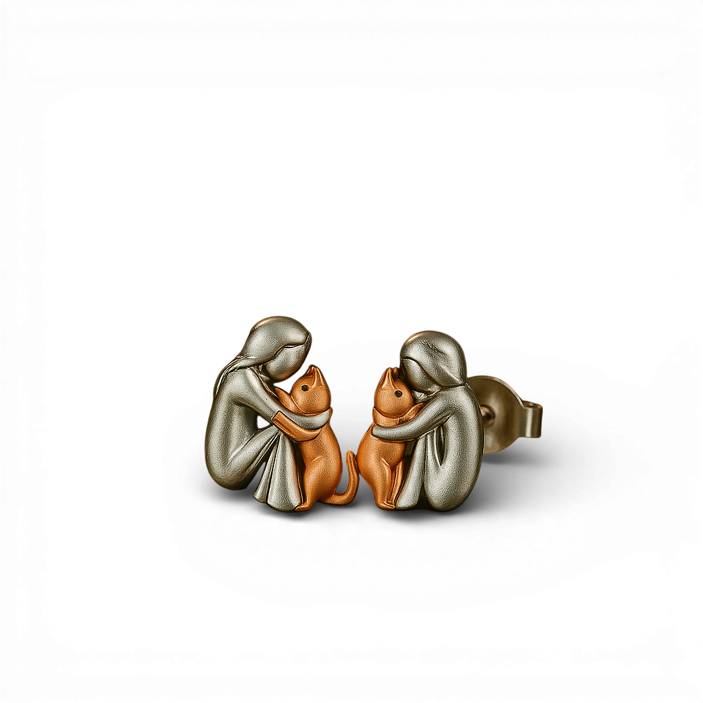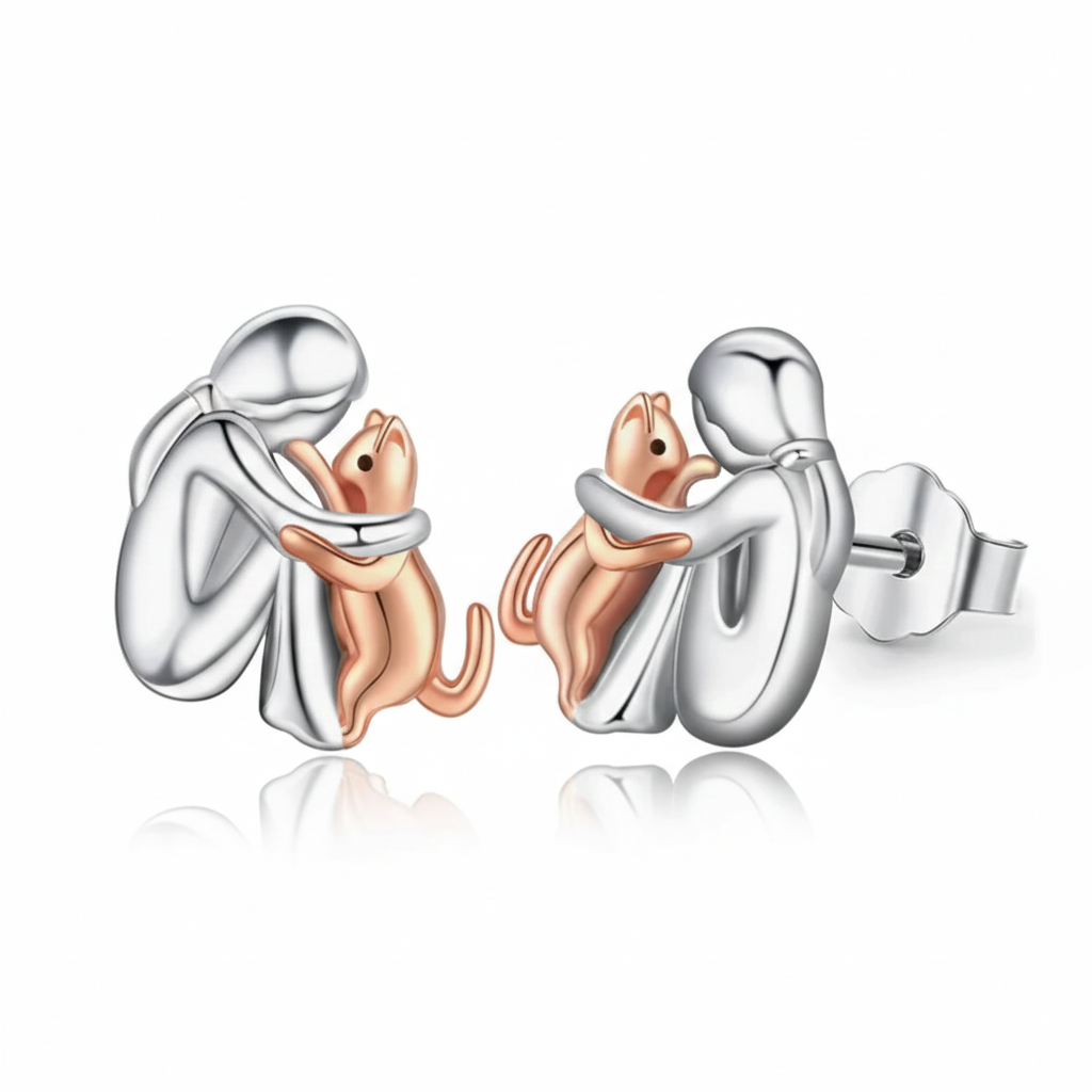 Fang den rene glæde ved ubetinget kærlighed med disse delikate ørestikker med en pige, der omfavner sin elskede kat. Fremstillet med en poleret tofarvet sølv- og rosaguldsfinish, fejrer disse betydningsfulde øreringe det særlige bånd mellem dig og din kat – en perfekt påmindelse om den stille trøst, som kun en kat kan give.