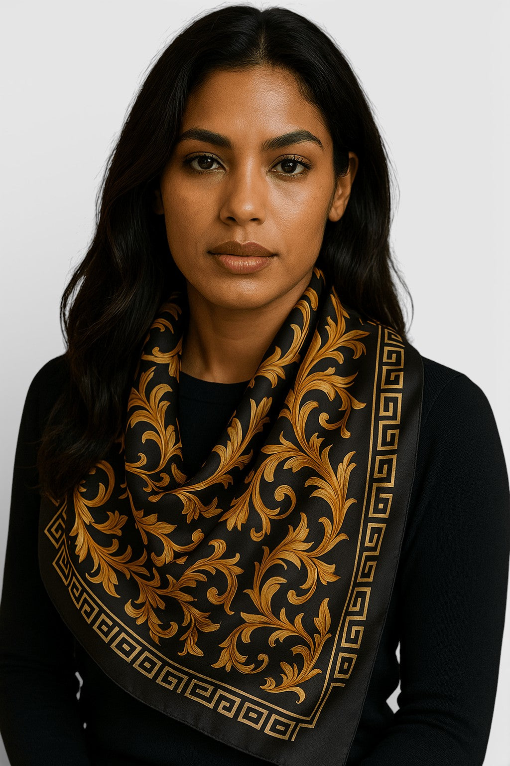 • Størrelse og styling: 88 x 88 cm i et klassisk firkantet format, der giver utallige muligheder omkring halsen, i håret eller som detalje på jakke eller kjole.